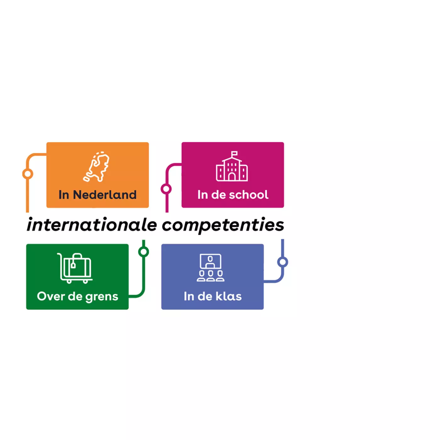 Internationale competenties helpen je te leren, leven en werken in een interculturele klas, samenleving en een internationaal georiënteerde arbeidsmarkt. Bekijk die internationale competenties in ons model, uitgesplitst naar interculturele competenties, internationale oriëntatie en persoonlijke ontwikkeling.
