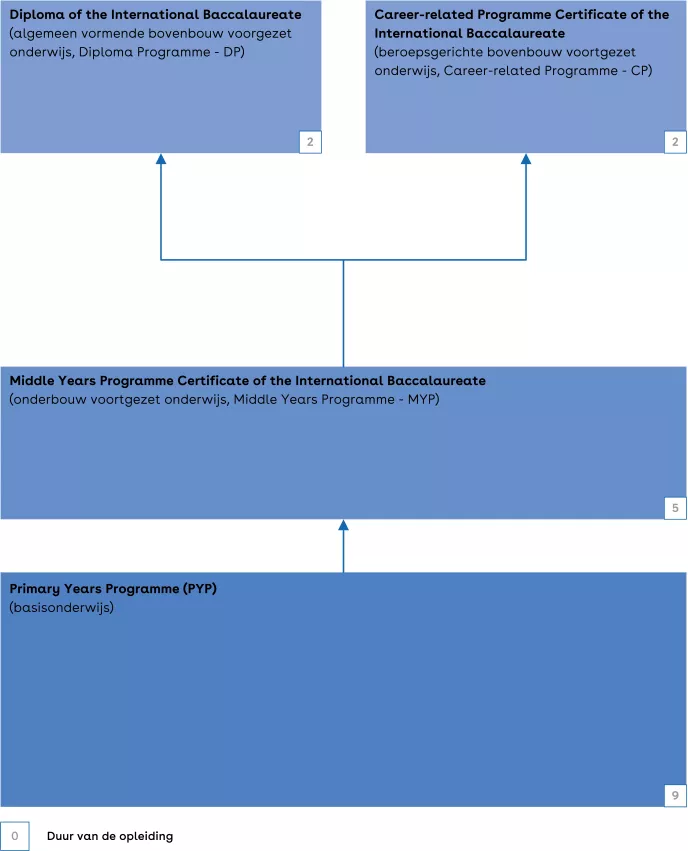 In dit schema kun je zien hoe het International Baccalaureate (IB) is opgebouwd.